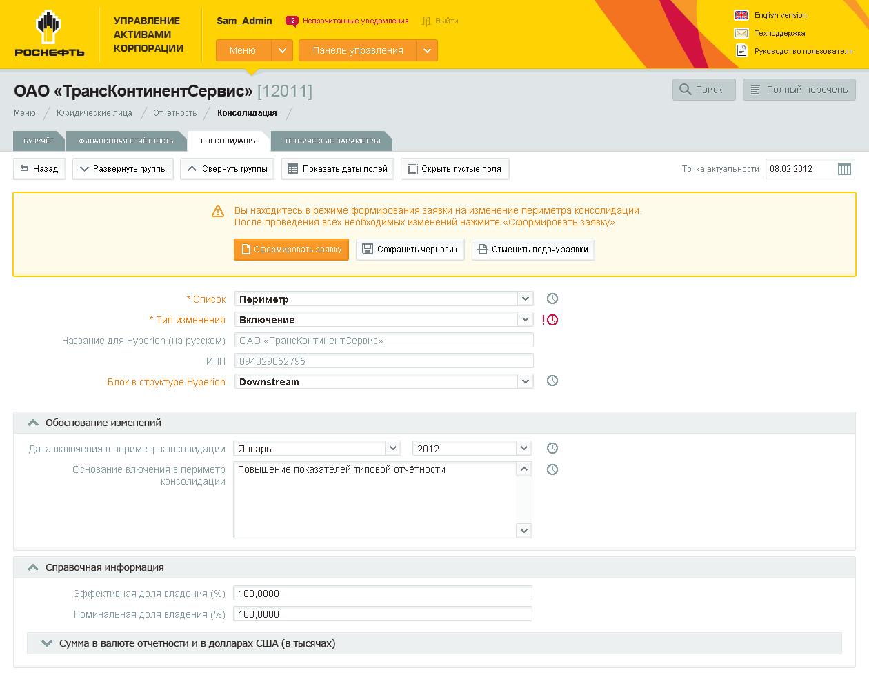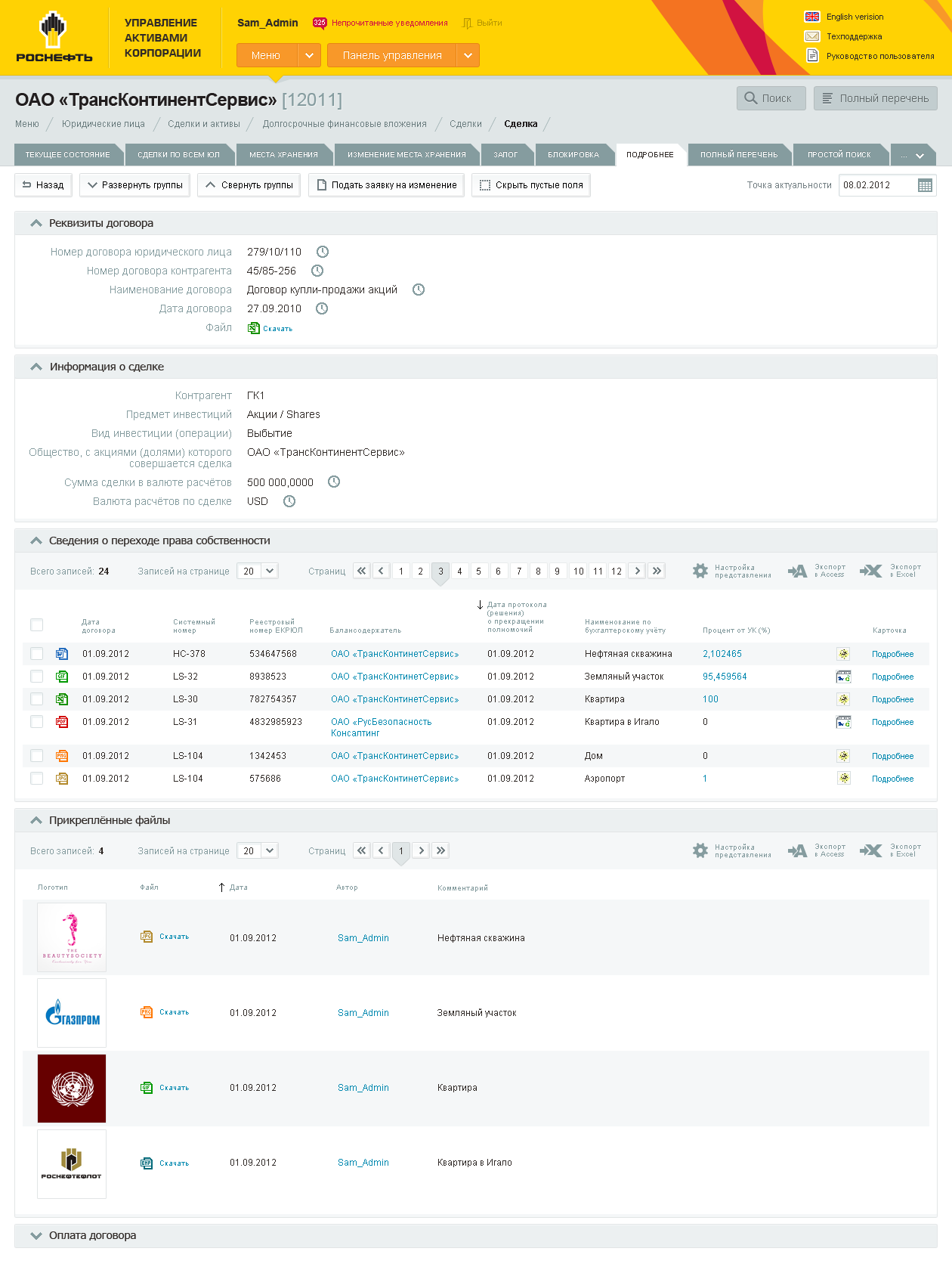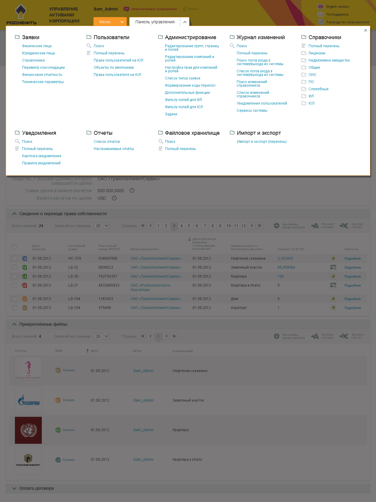Rosneft. Inner document exchange interface