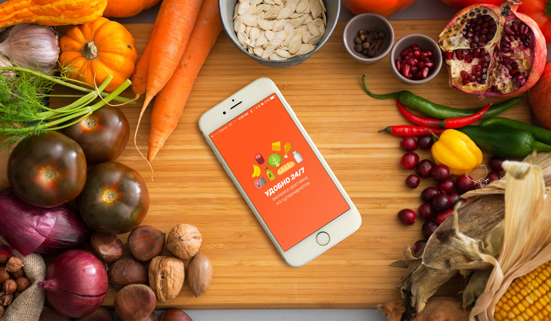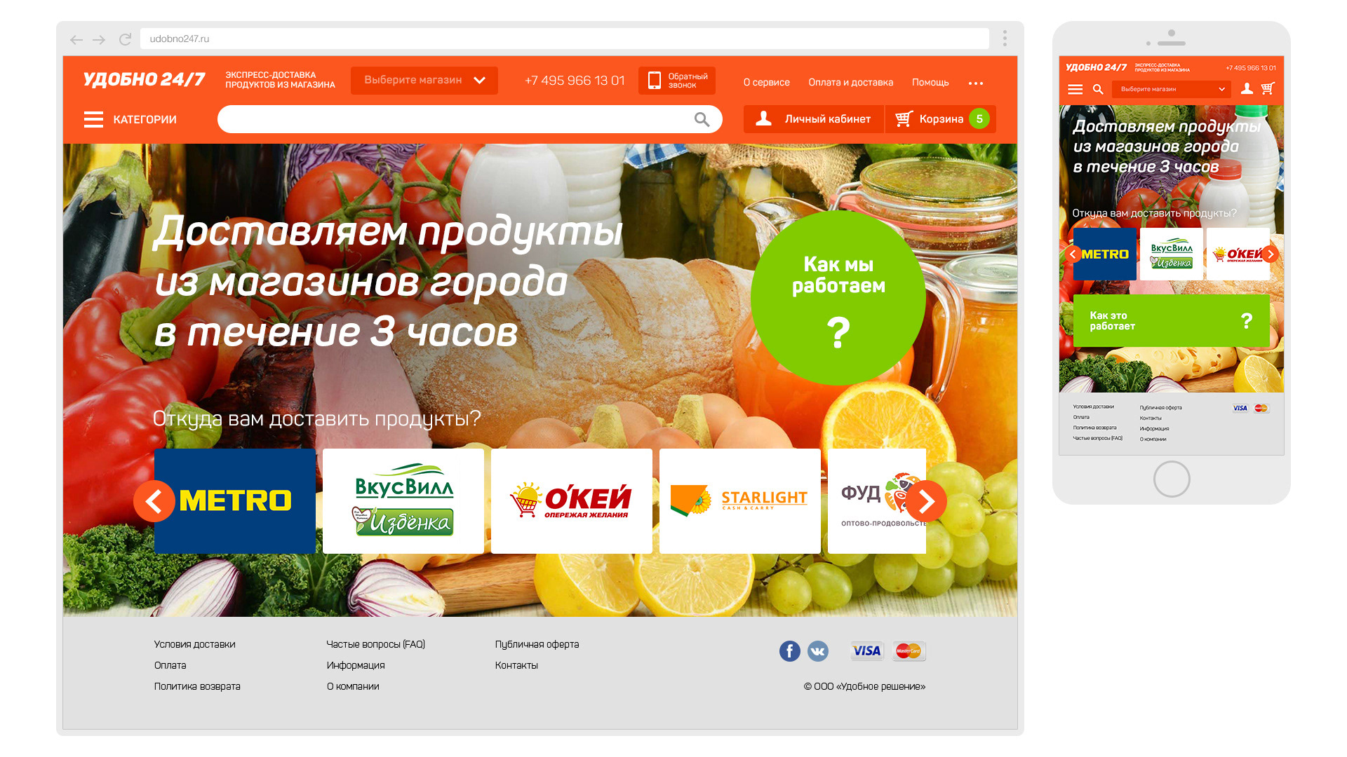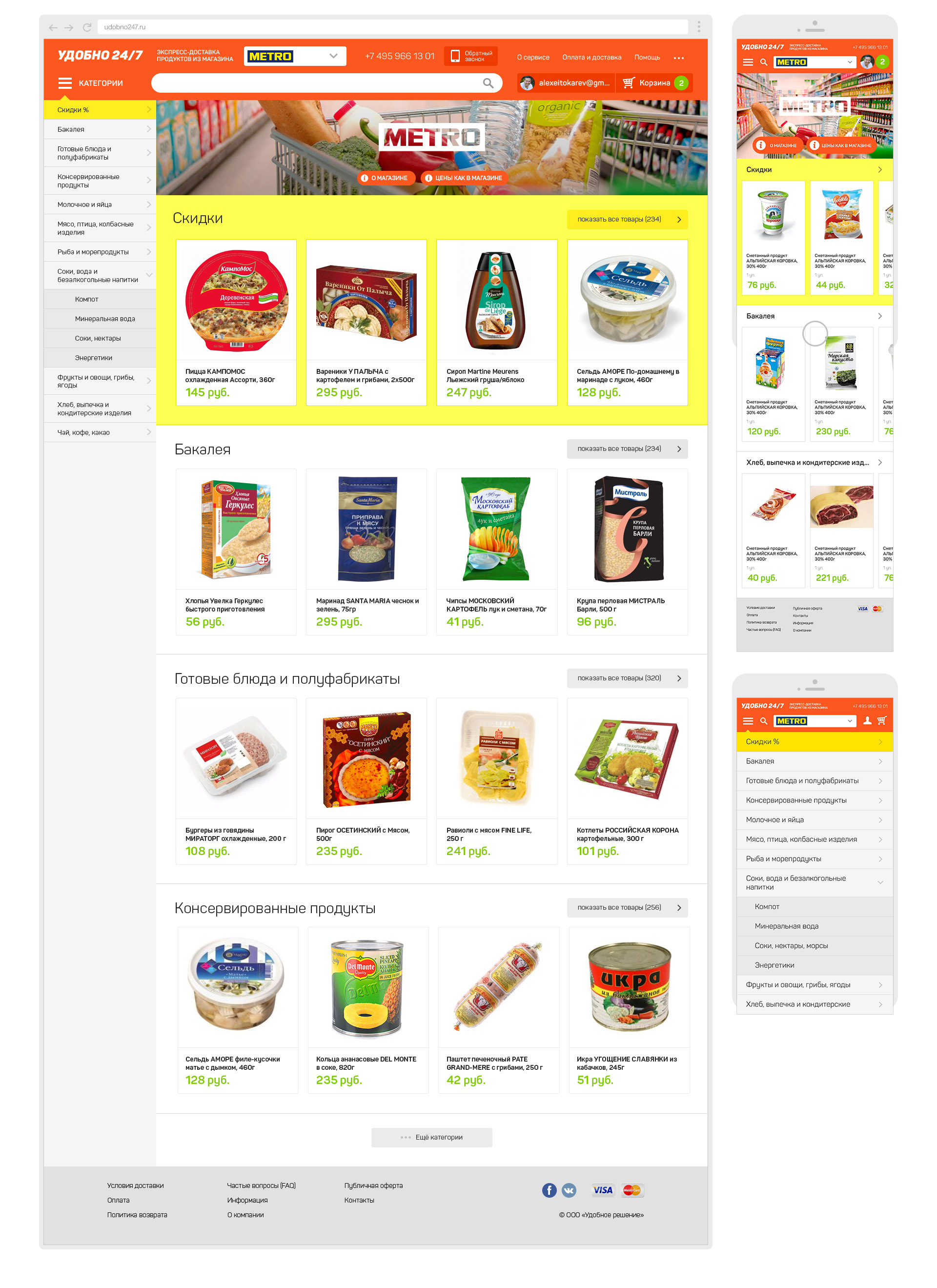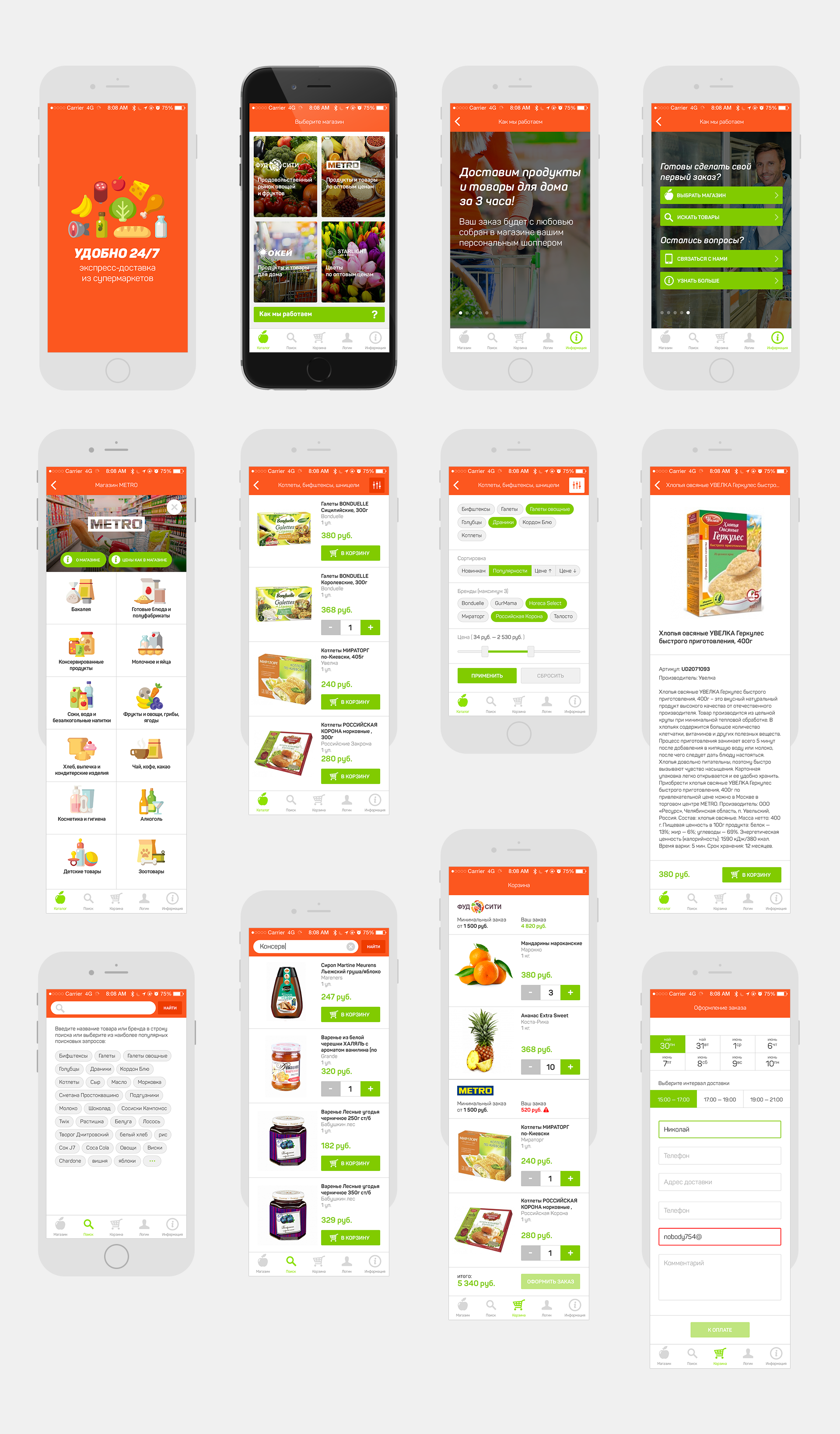 Website, icons, application design for russian food delivery startup,